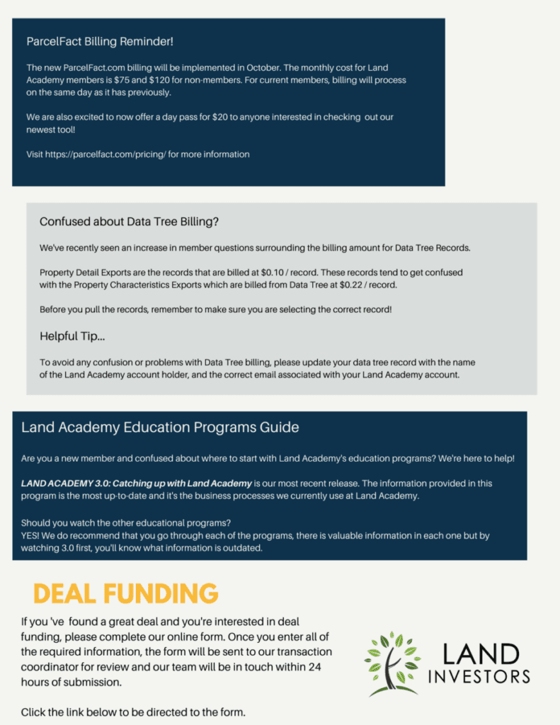 If you aren’t a member yet – why not? We would love to have you “in our corner.” Visit LandAcademy.com or HouseAcademy.com for more information on joining or to schedule a call with our team.