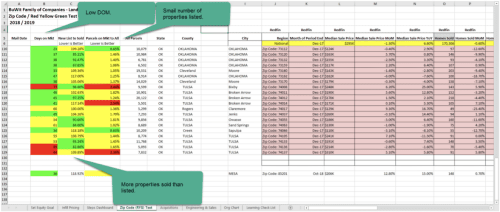 Counties or zip codes that have very low Days on Market for land sales and sufficient data to confirm this fact will be very logical mail candidates. Next year the circumstances in that county may change so consistently running these days before sending mail is always the best choice.